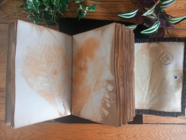 A5 size, ecoprinted handmade, handstitched writing/sketching journal/notebook. 128 pages. Recycled high quality paper is ecoprinted using local leaves in a boiling process, giving each page an antiqued manuscript look. Then handsewn using an old-style bookbinding technique, creating a unique journal, made right here in kerry. We use quality upcycled materials where possible, such as fabrics and belts to create your personal journal. Ecoprinting is the process of transferring the colour of leaves and flowers onto a piece of paper. It is a natural dyeing practice which is sustainable and ecofriendly for humans and for the environment.